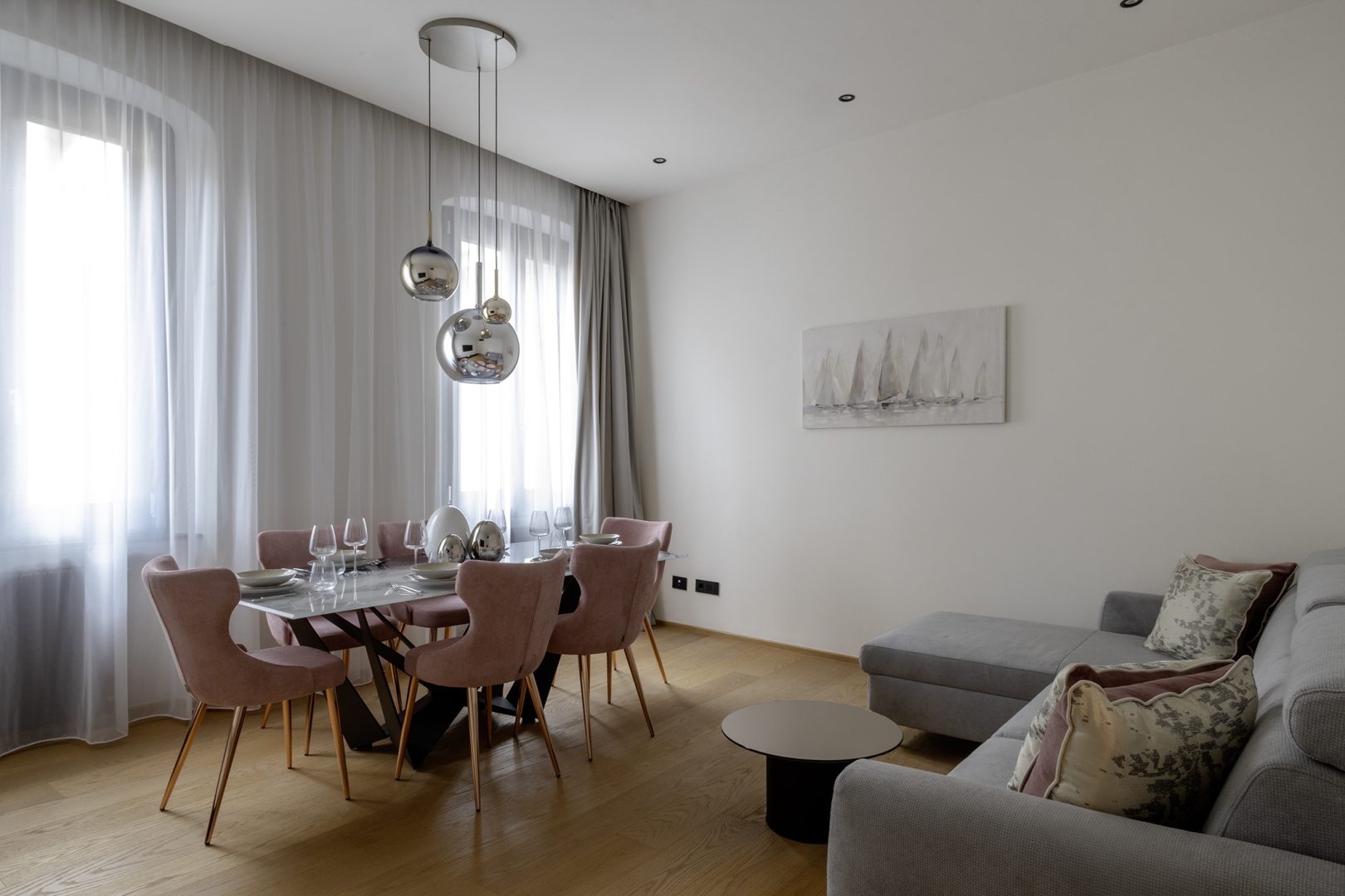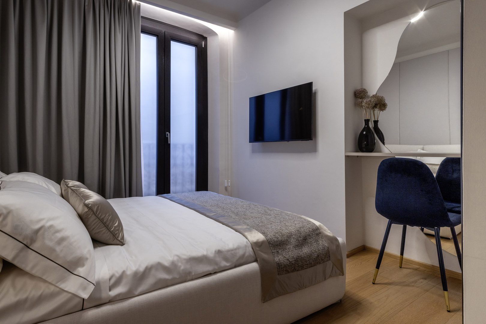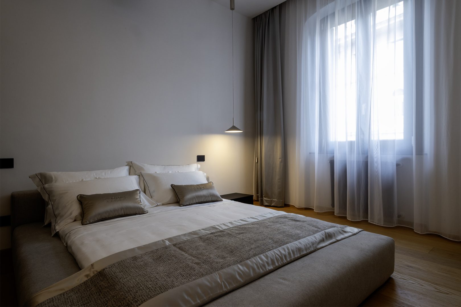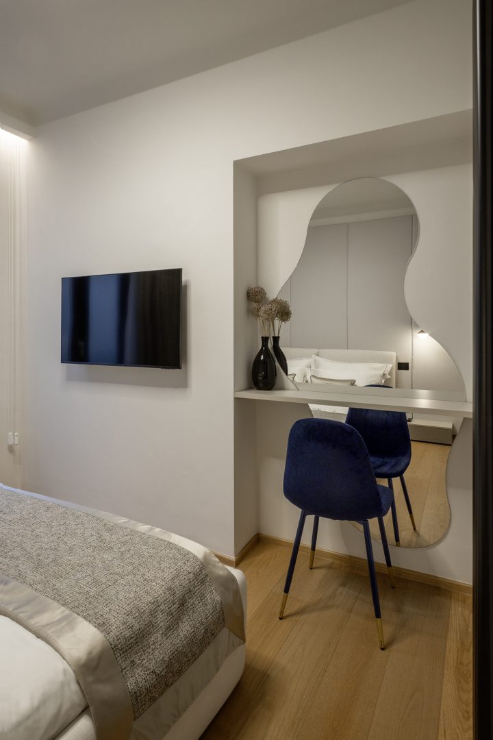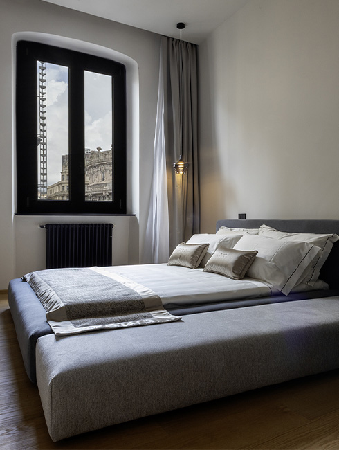 La limpida luce di Genova entra dai finestroni alla genovese si riversa sui marmi, i tessuti ricamati e le calde venature del pavimento in legno. Dettagli preziosi che fanno da teatro alla tua storia, per accoglierti al tuo rientro dopo una giornata tra le braccia della Superba.